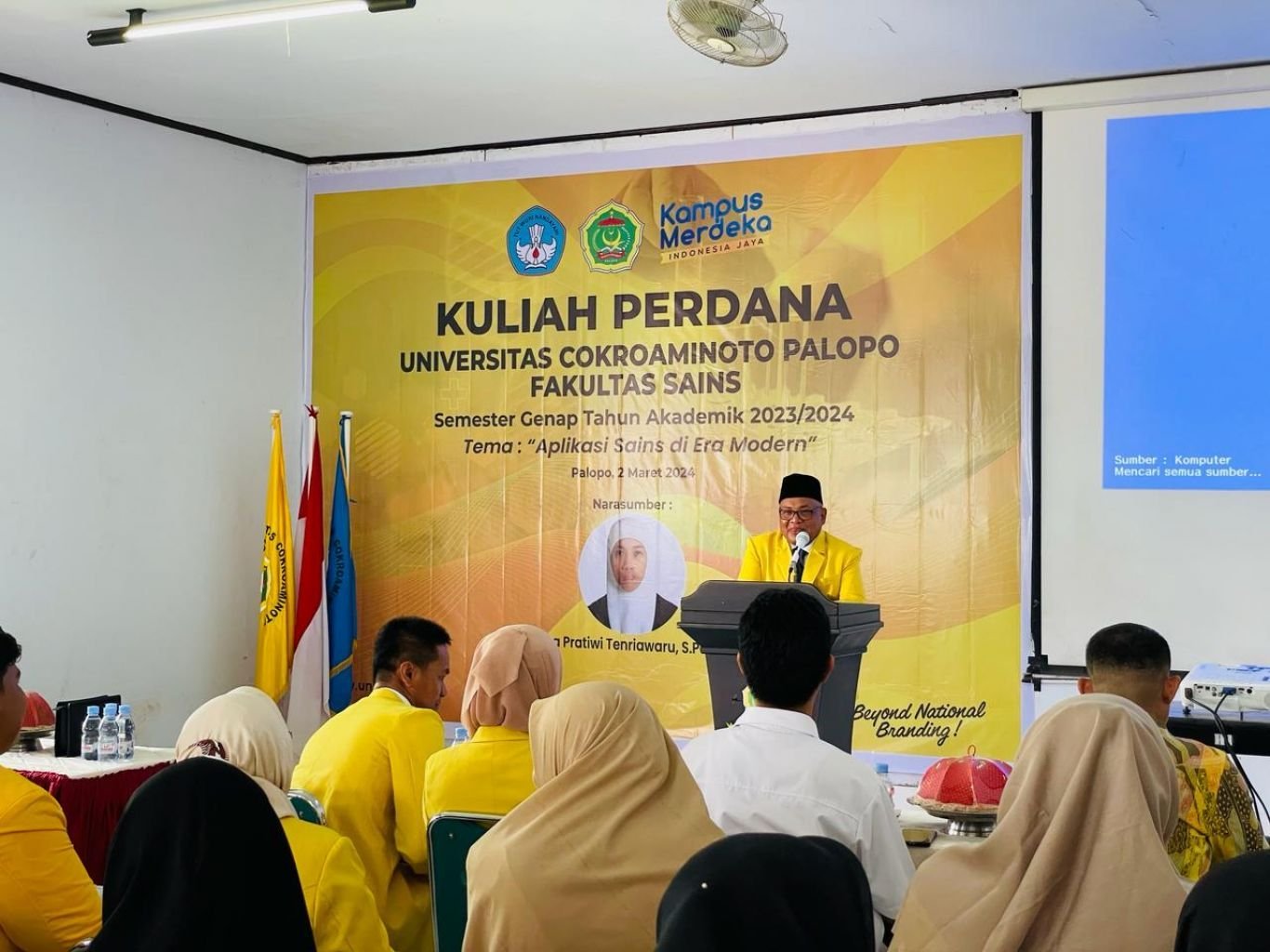 Sabtu (2/3), berlangsung di Aula H Kampus 2 UNCP, mahasiswa Fakultas Sains antusias mengikuti jalannya kuliah perdana yang dihadiri, pimpinan Universitas, Dekan Lingkup UNCP, dan dosen lingkup FSains.