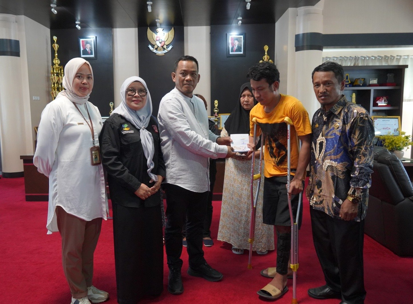 Penyerahan bantuan santunan ahli waris korban bencana tanah longsor dari Kementerian Sosial Republik Indonesia, dilaksanakan diruang kerja Bupati, Kompleks Perkantoran Bupati Luwu, Belopa, pada, Jum’at, 21 Maret 2025.