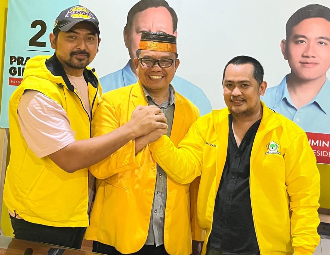 Ketua Golkar Lutim Aripin diapit Wakil Bupati Luwu Timur Mochammad Akbar Andi Laluasa (kiri) dan Sekretaris Golkar Lutim Andi Rio Pattiwiri (kanan). (ist)