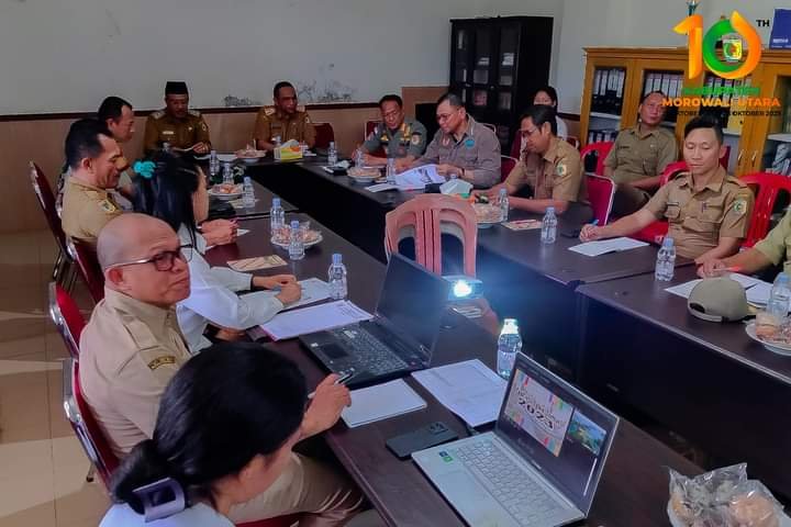 Rapat yang dipimpin Wakil Bupati (Wabup) Morut, H Djira K SPd MPd, di ruang rapat Sekda Morut, Selasa 10 Oktober 2023.