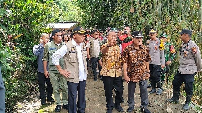 Menko PMK Muhadjir Effendy meninjau longsor di Dusun Palangka, Kelurahan Manggau, Kecamatan Makale, Kabupaten Tana Toraja, Jumat 19 April 2024. (ist)