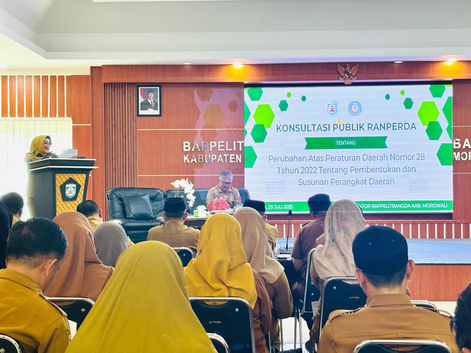 MOROWALI, TEKAPE.co – Pemerintah Kabupaten Morowali melalui Bagian Hukum Sekretariat Daerah menggelar konsultasi publik terhadap dua Rancangan Peraturan Daerah (Ranperda) di Aula Bappelitbangda, Kompleks Perkantoran Fonuasingko, Selasa (29/7/2025).