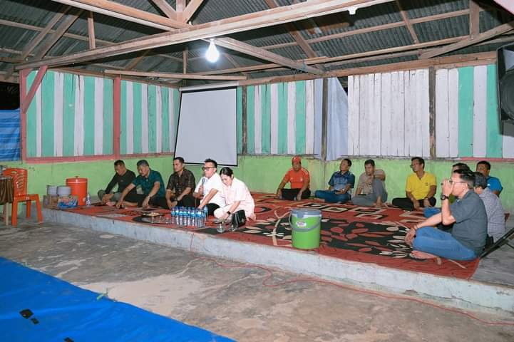 Bupati Delis dan Ketua TP PPK Febriyanthi, serta sejumlah Pimpinan OPD dijajaran Pemda Morut dan Camat Mori Utara, duduk bersila makan malam bersama dengan masyarakat.