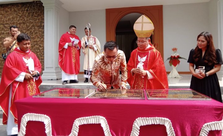 Penandatanganan Prasasti Peresmaian Gereja Katolik Paroki Maria Bunda Penolong Abadi Beteleme, Minggu 28 Mei 2023. (ist)