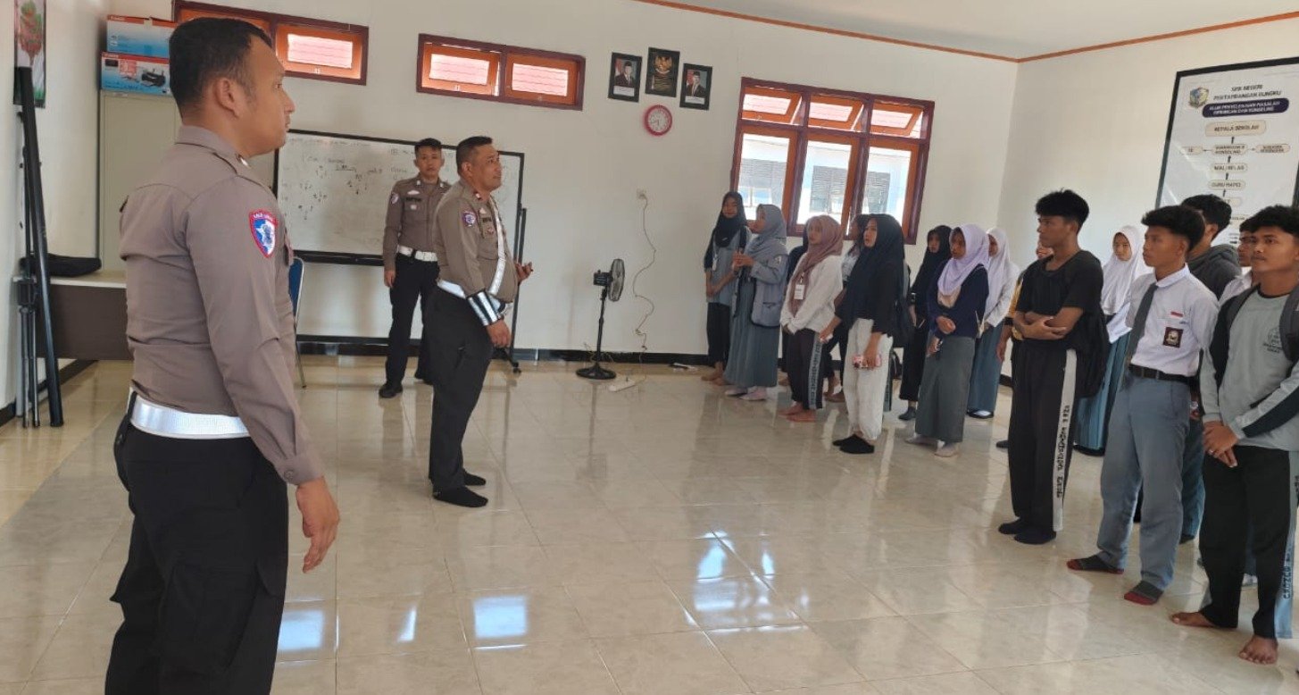 Petugas juga menekankan pentingnya penggunaan helm, larangan berkendara bagi siswa yang belum cukup umur, serta mengajak siswa menjadi pelopor keselamatan berlalu lintas di lingkungan masing-masing.