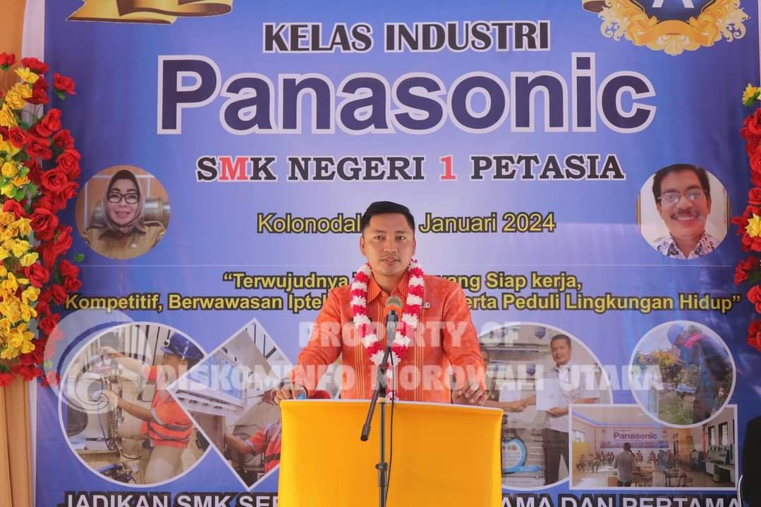 MORUT, TEKAPE.co – Bupati Morowali Utara diwakili oleh Staf Ahli Bidang Politik, Hukum dan Pemerintahan Herry Pinontoan, S.STP, menghadiri Peresmian Kelas Industri Panasonic SMK Negeri 1 Petasia, Kelurahan Bahoue, Sabtu 20 Januari 2024.