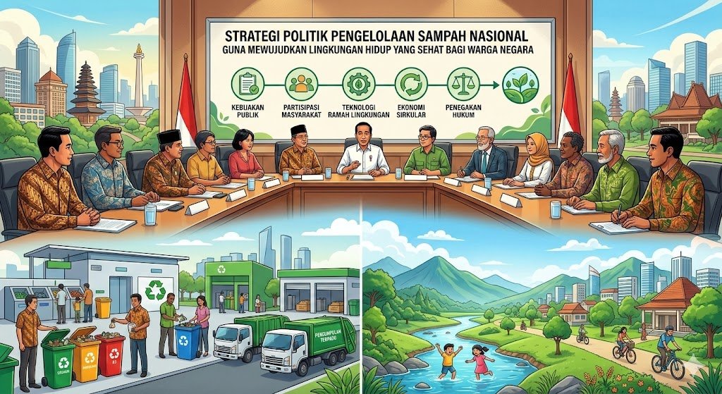 Persoalan sampah di tingkat nasional bukan sekadar masalah teknis pembuangan, melainkan isu politik yang memerlukan kebijakan strategis dari hulu ke hilir. Pertumbuhan penduduk dan pola konsumsi yang meningkat tajam menjadikan sampah sebagai ancaman serius bagi kesehatan masyarakat jika tidak dikelola dengan visi politik yang kuat. Negara memiliki kewajiban konstitusional untuk menjamin lingkungan hidup yang baik dan sehat bagi setiap warga negaranya. Oleh karena itu, diperlukan sinergi antara regulasi yang ketat, alokasi anggaran yang tepat, dan kemauan politik dari para pengambil keputusan untuk mentransformasi sistem pengelolaan sampah konvensional menjadi model yang berkelanjutan dan berbasis teknologi.