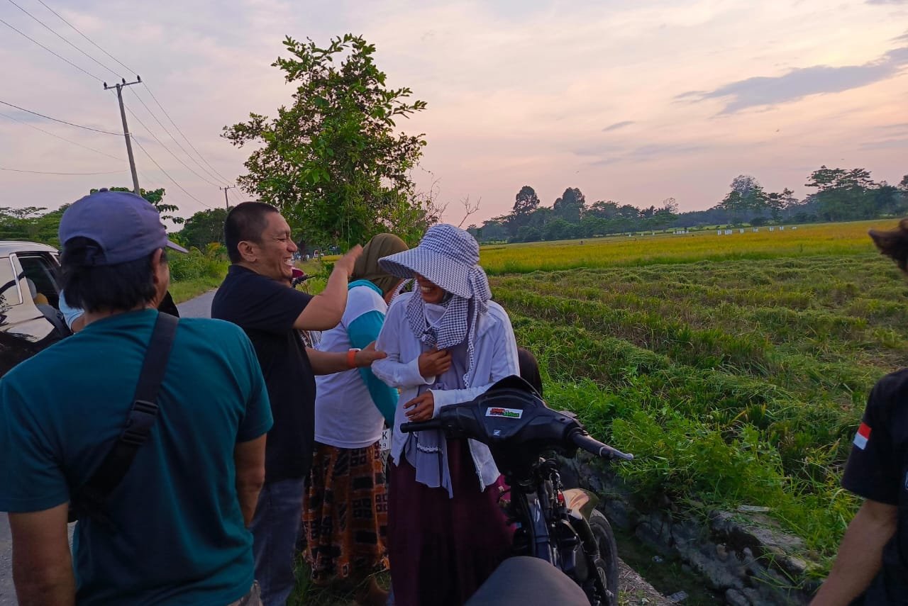 Para petani yang sedang panen padi tersebut menanyakan tentang program Ibas-Puspa yang berpihak kepada petani.