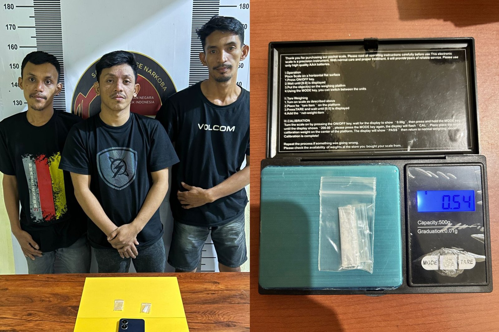 “Dari tangan ketiganya, disita satu saset sabut seberat 0,54 gram,” ujarnya.