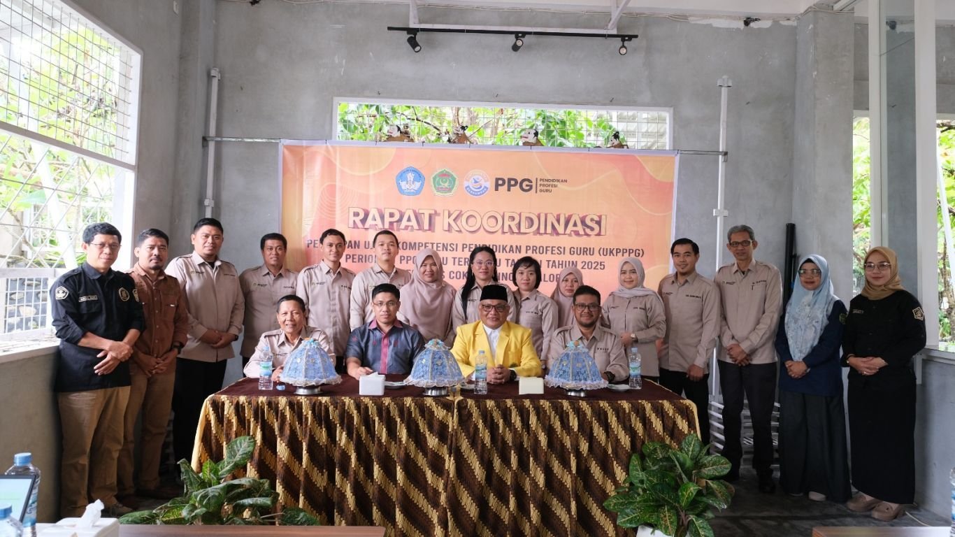 Sesi foto bersama usia rapat koordinasi persiapan Uji Kompetensi Peserta Pendidikan Profesi Guru (UKPPPG) Tahap 1 Tahun 2025, Selasa (15/7/2025). (ist)