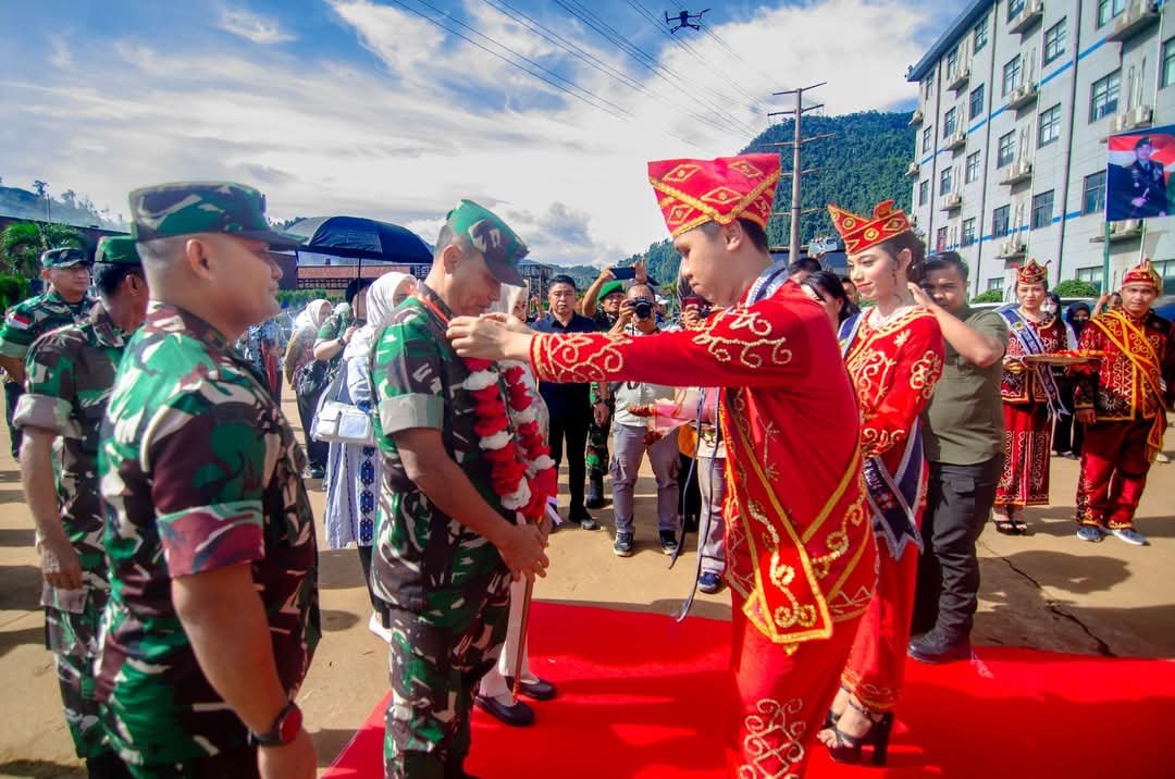 Suasana penyambutan Pangdam XIII/Merdeka, Mayjen TNI Suhardi saat melakukan kunjungan kerja ke Kabupaten Morowali Utara (Morut), Kamis 23 Januari 2025. (ist)